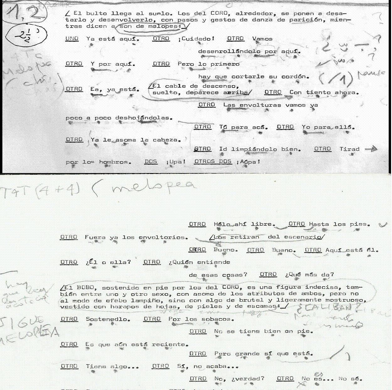 abre la obra: 'Ya está aquí,\ cuidado\Vamos.../' (signo '\' indica cambio