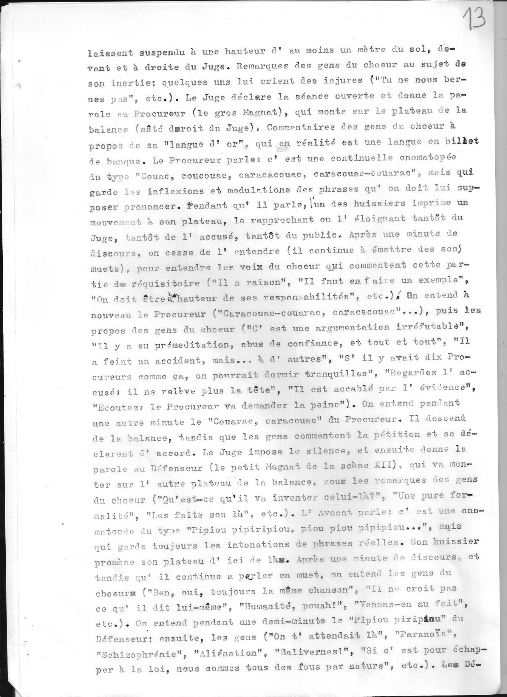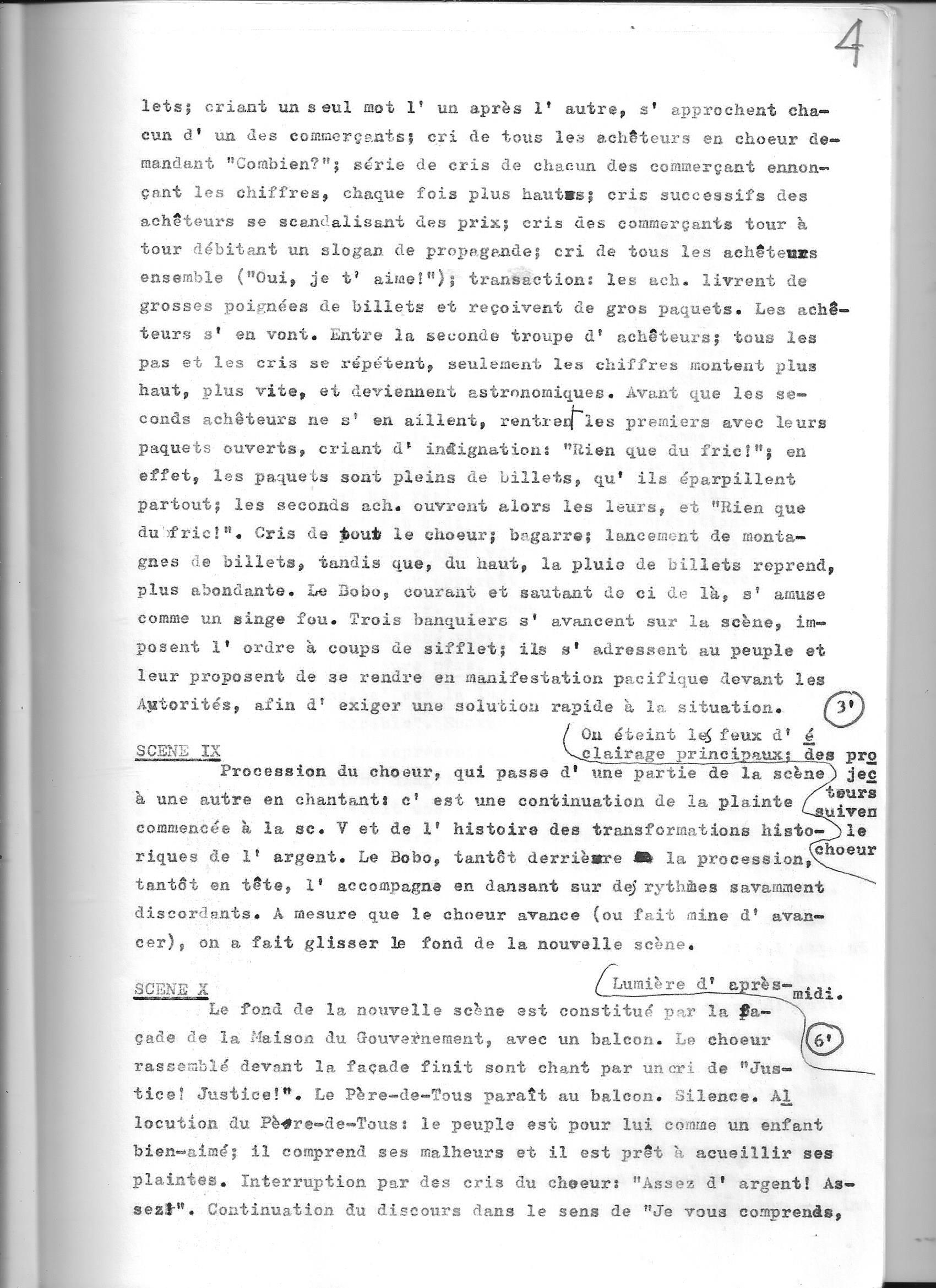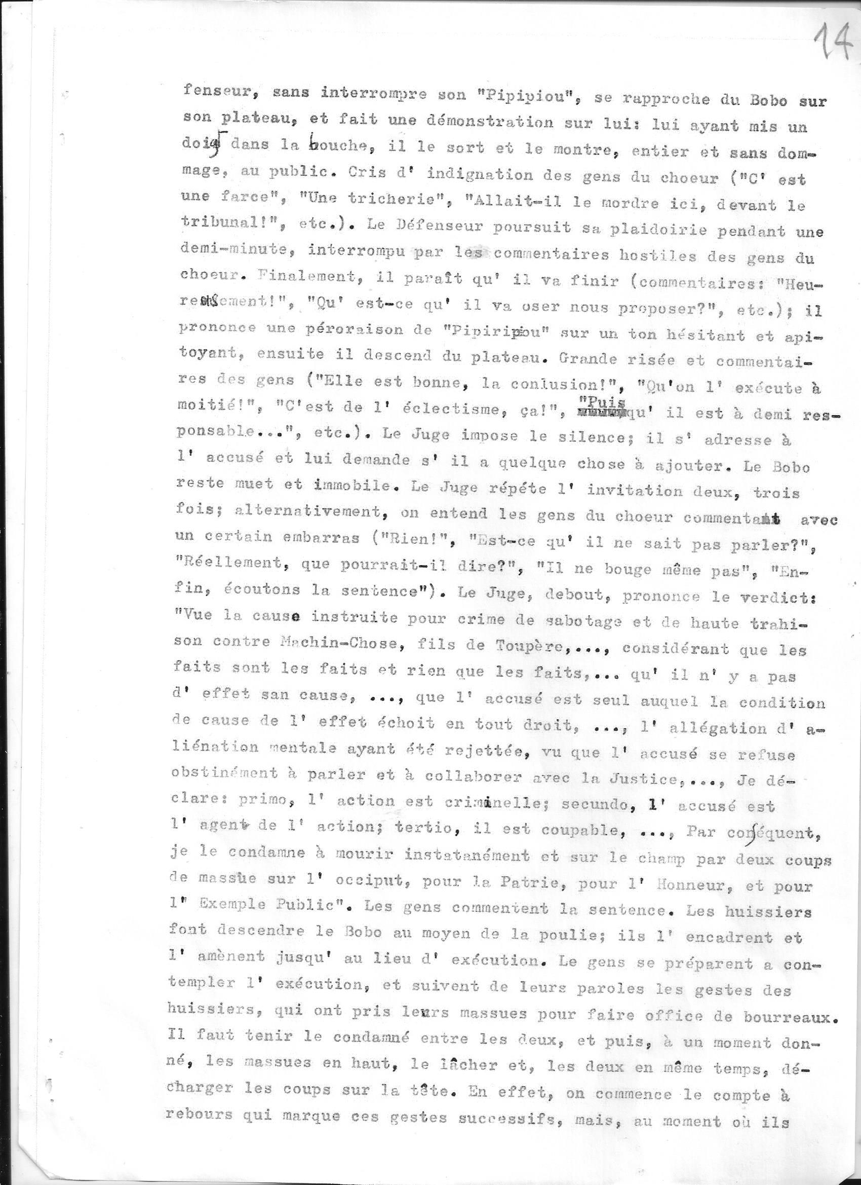 El siguiente texto (en francés), muy poco conocido, lo escribió AGC durante su estancia en París. Es un texto importante para la mejor comprensión de Bobomundo, porque describe minuciosamente las circunstancias de la escenografía --nada sencilla-- de la obra. Puntualiza en él los tiempos de la acción, las luces diferentes ligadas a esos tiempos, el movimiento de actores, aunque estos quedan descritos en el texto del libreto como apartes. La diferencia entre ambos textos radica en que las acotaciones en la obra son breves informaciones para el lector, mientras que en el presente texto se trata de informaciones precisas momento a momento, como en un guión de cine, aunque sin los diálogos, que están en el libreto. Es material profesional, para el director, el escenógrafo, el estudioso y los actores.