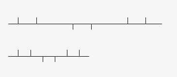 Como el tono, el ritmo implica repetición: y en esta repetición cuenta la duración del ciclo o período repetido, que se percibe como altura tonal, en el tono, o como velocidad del tempo, en el ritmo. Pero, dentro de un margen pequeño (por ejemplo de 0.5 a 5 segundos), cuenta mucho la duración relativa de dos o más períodos. Se trata de un cociente, relación o razón de dos períodos. Cuanto más sencilla sea esa relación, como se sabe, más sencilla es su percepción conjunta, mejor consuenan, conciertan ambas rítmicamente. Todo esto concierne al contrapunto, (contraposición simultánea de puntos o notas de diferente duración). Si se baten dos tempos de frecuencia diferentes, comenzando con un golpe común, volverán a coincidir dos golpes en un intervalo temporal igual al mínimo común múltiplo de sus períodos de repetición: si se baten dos tempos de períodos en relación 2 a 3, coinciden otra vez dos golpes cada tres períodos del primero, o dos del segundo, es decir con un período correspondiente a 6 unidades de las que usamos en los dos primeros, como muestra la figura 4. Si los períodos son 4 y 5, obtenemos un período de 20, ya difícil de seguir. En cambio si los períodos no son números primos entre si, 8 y 6, por ejemplo, el período compuesto es menor de lo que podría esperarse (no el producto sino el m.c.m.); en realidad se trata de dos períodos en relación sencilla de 3 a 4, con período compuesto de 12. Todo esto es obvio.